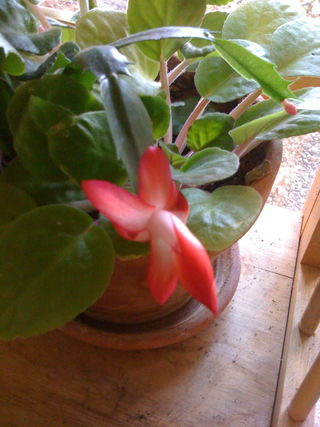 Here is a baby blooming. A baby of the cactus I bought for life partner 14 years ago, he shares his pot with a new baby violet.