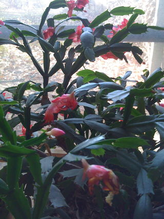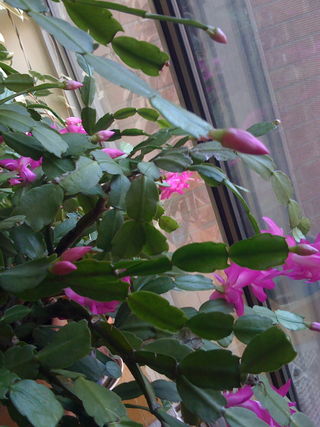 Today, I am thankful for my Christmas Cactus plants, which always bloom around Thanksgiving time. They live by the window in my study.