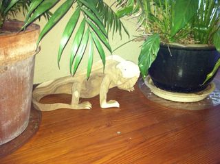 … an iguana carved from teak to hide between some plants on our sun porch …