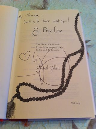 As we talked together I started to realise that this man was, in fact, Jose Nunes, Elizabeth Gilbert's husband. I smiled and laughed, exclaiming, "Ah, so you are Javier Bardem!" Jose smiled in return and said something about Javier being a "very jazzed-up version" of him! As we entered the store through the back in order to purchase the marble urn, Jose said that Liz was inside if we wanted to meet her. I was thrilled. "I wonder if she wouldn't mind signing a copy of my book?" I asked a little sheepishly, since I had put my copy in the car before we left home … you know, just in case. "Of course!" Jose replied kindly. Come on in!